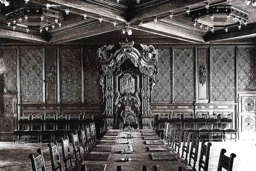 1710 wurde der Große Sitzungssaal von Antonio Beduzzi mit einem hochbarocken Deckenfresko ausgestaltet.